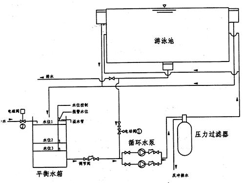 了解更多+如圖這是一種比較簡單而實用的平衡水箱,有人入池后貯存泳池溢出的水量,人出池后將箱內(nèi)水送回泳池的調(diào)節(jié)作用,及過濾裝置利用泳池水反洗后的補水和其它補水作用。