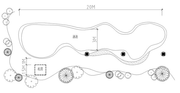它的設計原理和經驗來源于標準公共泳池,是依據(jù)《游泳池和水上游樂池給水排水設計規(guī)程(CECS14:2002)》、《游泳池給水排水工程技術規(guī)程(CJJ122-2008)》《建筑給水排水設計規(guī)范GB50015-2003》《游泳場所衛(wèi)生標準(GB9667-96)》等國家規(guī)范設計的。但由于私人泳池水量小,使用人數(shù)少,負荷低,無需加熱、需要的設備較少等特點,所以設計相對簡易的機房,設在泳池深水端附近,機房既可布置在地上與園林景觀結合也可以采用全地下式,面積約2平方米。