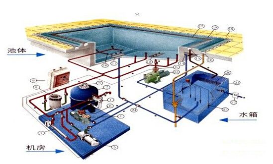一套完整的游泳池水處理系統(tǒng)是由以上各部分合理組成的,每一個游泳池都應(yīng)根據(jù)實際情況來進(jìn)行設(shè)計、建造、安裝等。