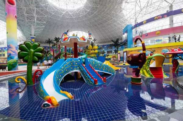 室內(nèi)恒溫兒童水樂園按功能區(qū)分為分為接待區(qū)、預備區(qū)、游樂區(qū)、游泳區(qū)、機房共5大部分。