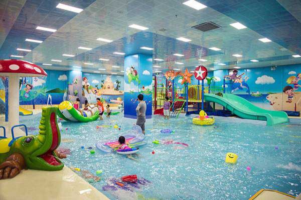 4、游泳區(qū),水深2000px,為保證安全獨立成區(qū),主要提供兒童游泳以及相關(guān)的培訓,由專門的工藝軟化,保證兒童游泳的安全性。